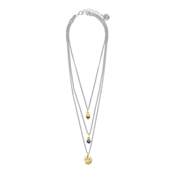 Este exquisito collar triple, bañado en plata y oro, es la mezcla perfecta entre elegancia y audacia.