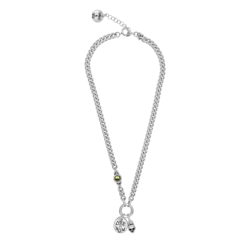 Atrévete a lucir el collar “Life is Now”, una audaz combinación de una calavera y una perla Swarovski, bañada en plata de alta calidad.