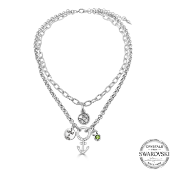 El acabado en plata resplandece con un brillo delicado que realza cualquier atuendo, mientras que su diseño de doble cadena añade profundidad y textura, creando un efecto visual cautivador.