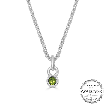 El colgante presenta un elegante acabado en plata, que realza un resplandeciente cristal de Swarovski, disponible en seis cautivadores colores. Cada uno de ellos refleja la luz de manera única, añadiendo un toque de sofisticación a cualquier atuendo.