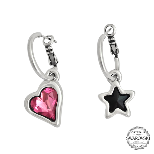 Pendientes realizados en zamak, bañados en plata, con Cristales Swarovski rose & jet.
