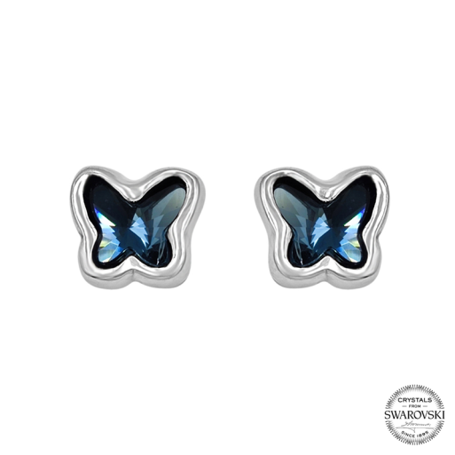 Pendientes realizados en zamak, bañados en plata, con Cristales Swarovski Denim Blue.