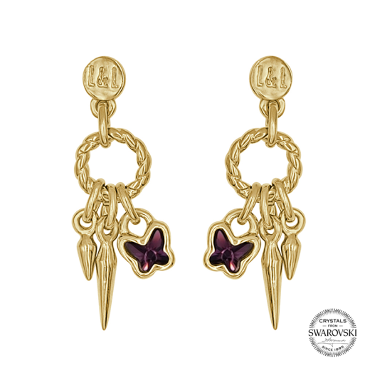 Pendientes realizados en zamak, bañados en oro, con Cristales Swarovski Amethyst.