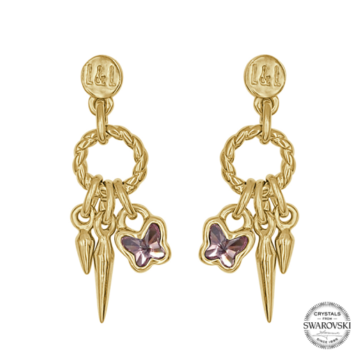Pendientes realizados en zamak, bañados en oro, con Cristales Swarovski Light Rose.