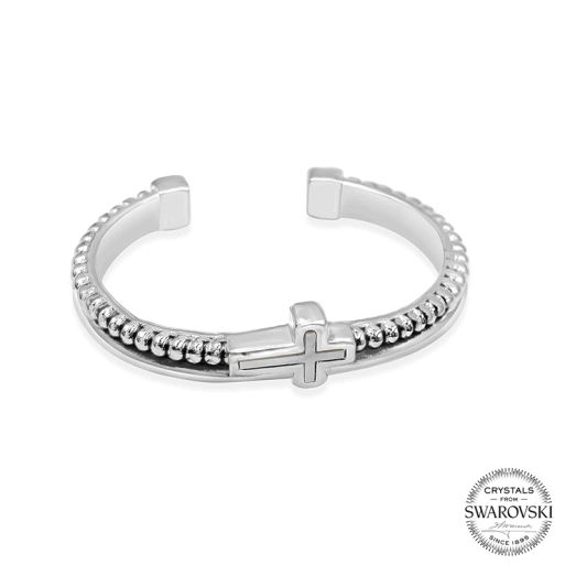 La delicada cruz de nácar añade un toque especial, convirtiendo cada pieza en una expresión de tu fe y estilo personal.