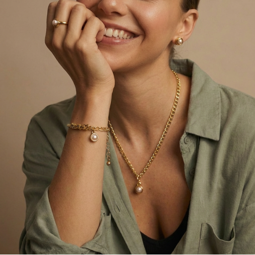 Hay palabras que lo dicen todo, y "Mamá" es la más poderosa. En LaMala & La Fea hemos diseñado esta pieza exclusiva para celebrar a esa mujer que es, a partes iguales, fuerza y ternura. Una pulsera que equilibra el brillo del oro con la delicadeza clásica de la perla, pero con ese toque contemporáneo que nos define.