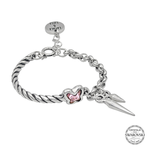 Pulsera realizada en zamak, bañada en Plata, con cristal swarovski Light Rose.