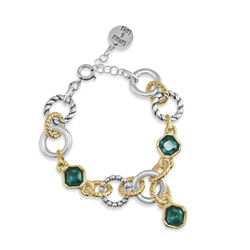 Pulsera realizada en zamak, bañada en oro y plata.